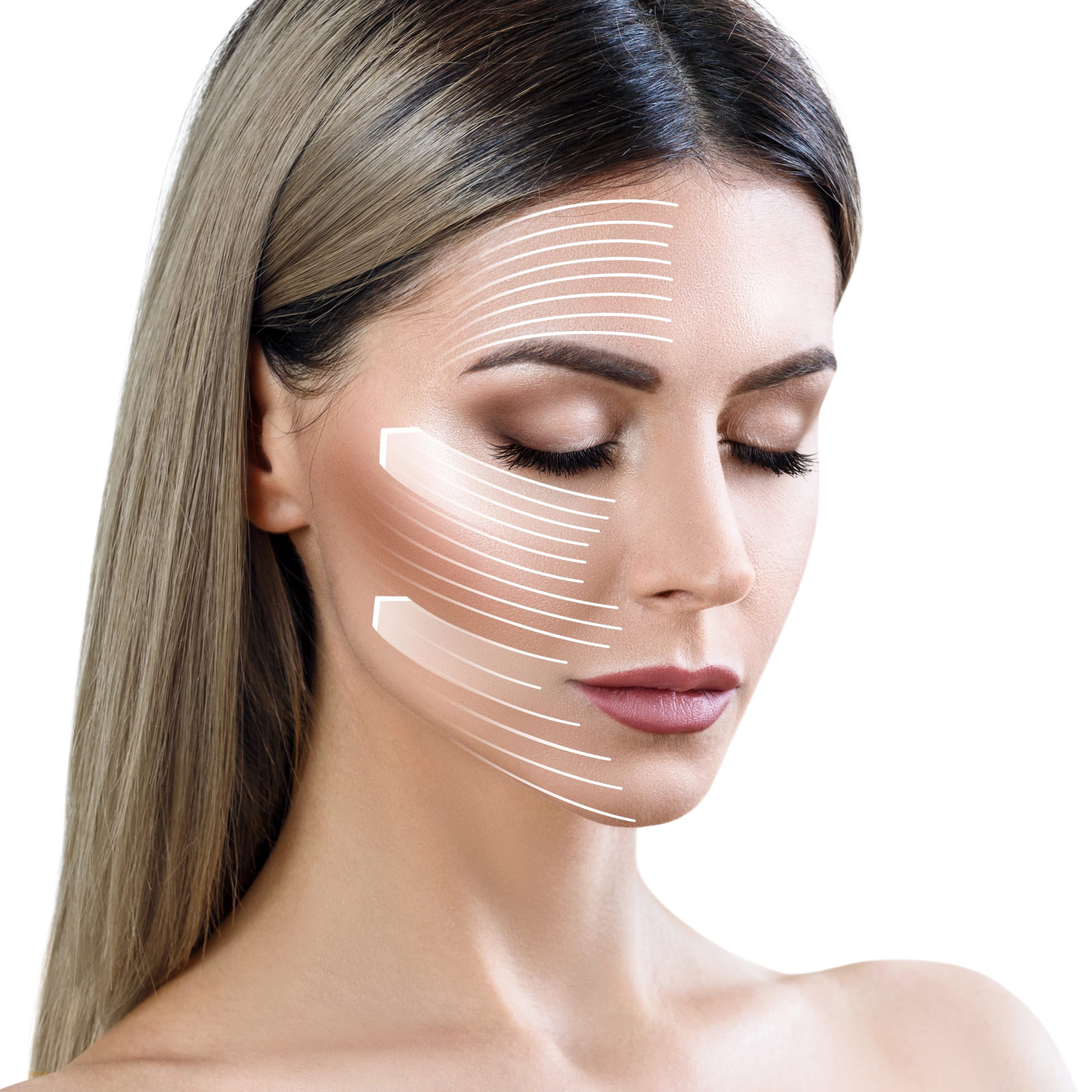 Immediately lift sagging skin in areas like cheeks, jawline, eyebrows, and neck